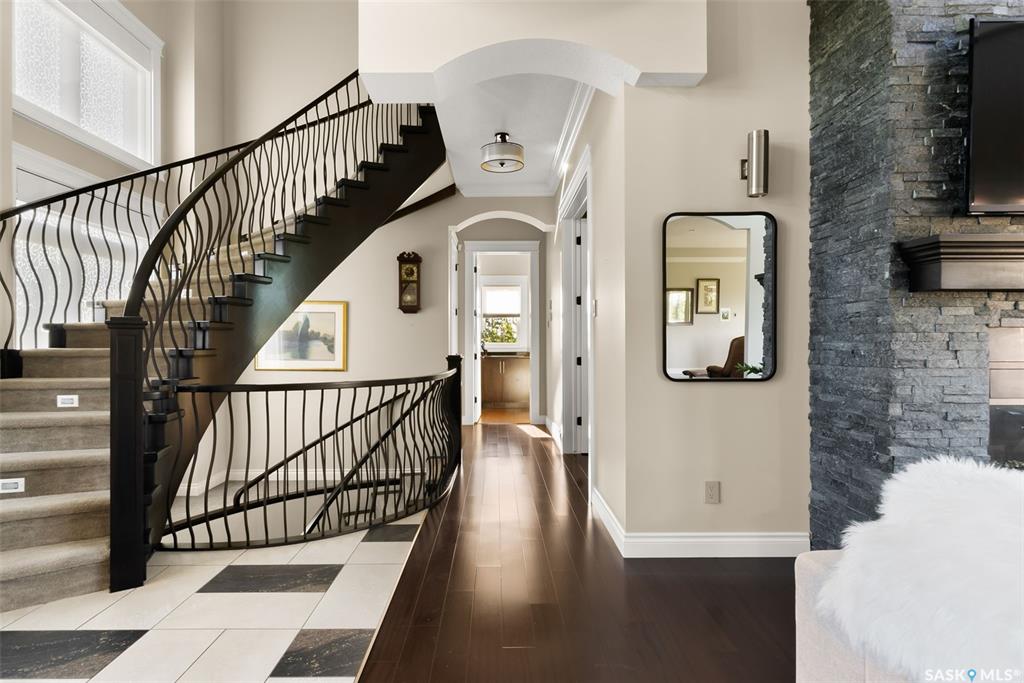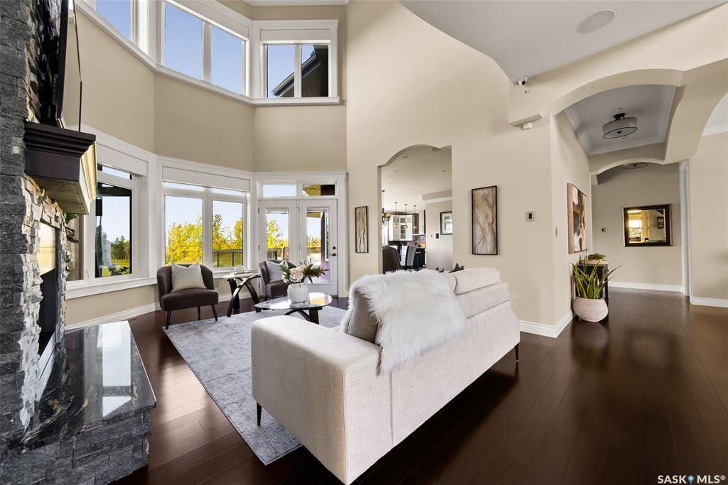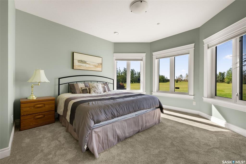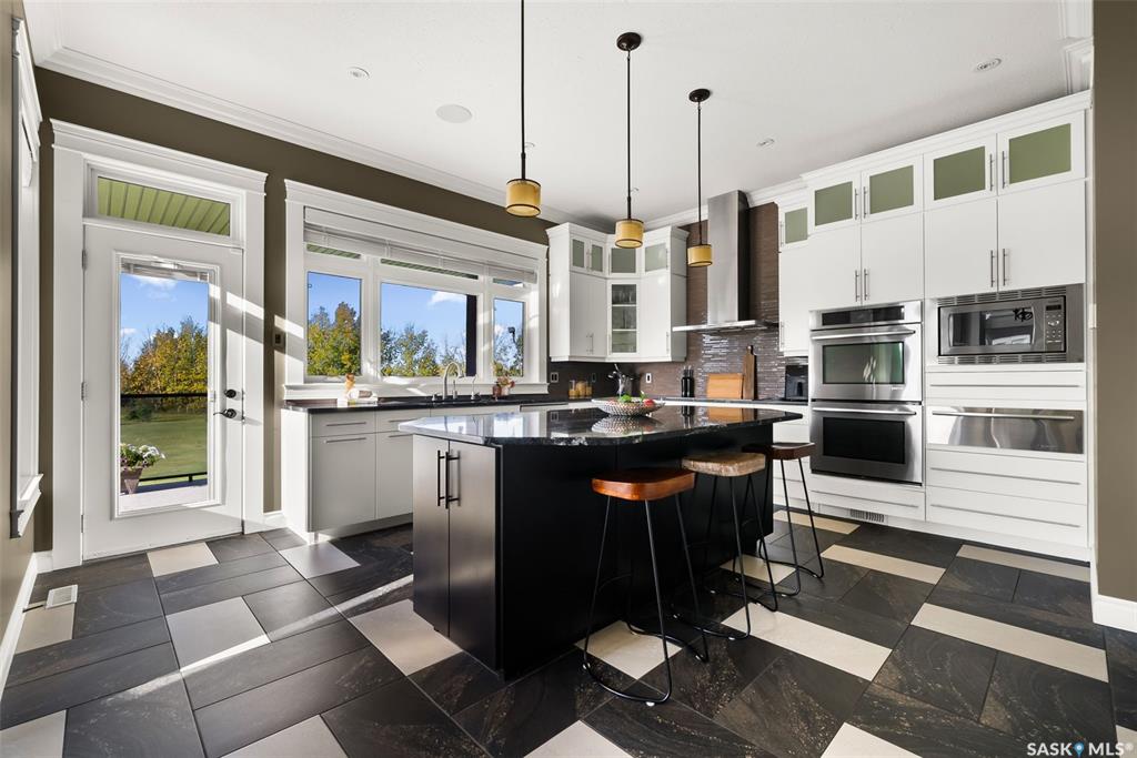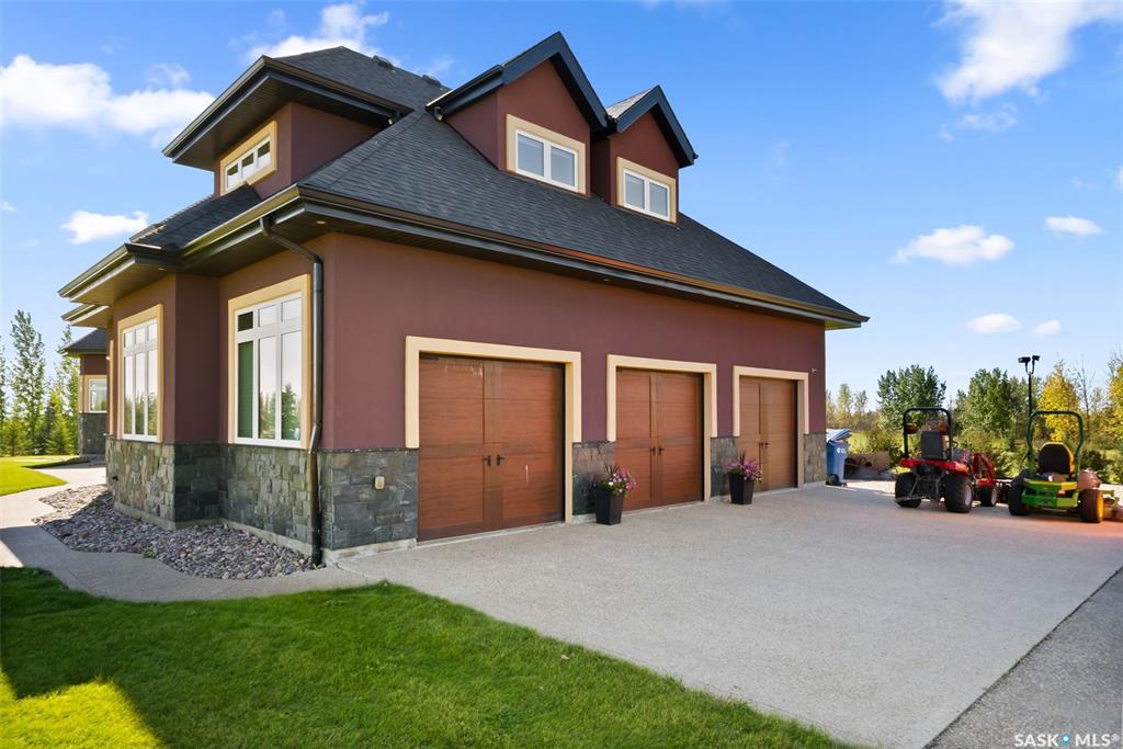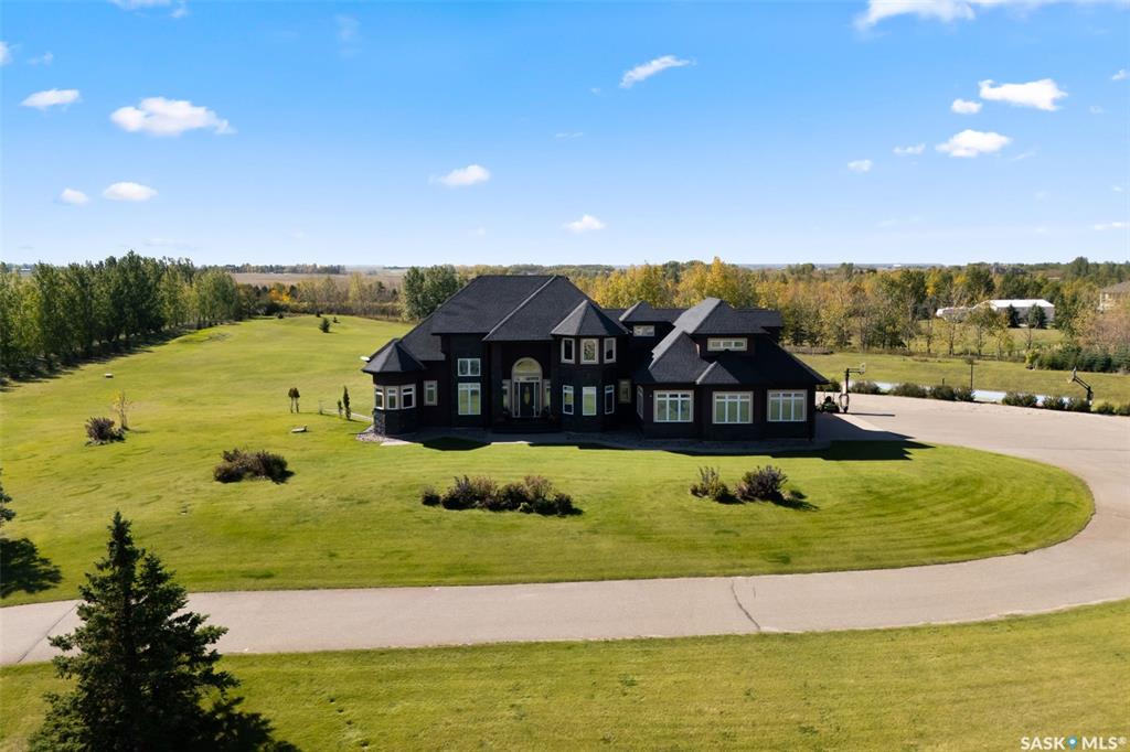 Step into unmatched luxury with this one-of-a-kind custom property at Mission Pointe Estates, offering over 4,075 sq. ft. on the main and second levels plus a fully developed 2,500 sq. ft. walkout. Situated on 4.89 landscaped acres, this home blends elegance, comfort, and technology. Grand foyer with heatee tile and sweeping spiral staircase set the tone for the home's sophistication. Living room features expansive windows and a cozy gas fireplace, opening to the dining area with bar fridge and custom cabinetry. The chef's kitchen boasts Sub-Zero refrigeration, Jenn-Air appliances, walk-in pantry with heated tile, Culligan water filtration, and direct access to a three-season sunroom. The primary suite is a private retreat with cork flooring, his & hers walk-ins, spa-inspired ensuite with heated tile, Bain Ultra soaker tub, dual vanities, and a built-in mirror TV. Upstairs are 3 bedrooms and 3 baths, including 2 ensuites and a shared bath with tub/shower, plus a large bonus room. The walkout lower level includes a theatre with projector/screen, wet bar with wine room, exercise studio, sewing/office space, and an additional bedroom with ensuite. In-floor heat runs throughout, and 4 rooms offer direct backyard access. Smart home features include Savant automation for TVs, fireplaces, and blinds, Apple TV, Xbox/DVD integration, and 3 Shaw Direct satellite dishes. Bedrooms have blackout + lace blinds, while automated blinds are in the kitchen, living, and theatre. Additional highlights include heated mudroom tile, central vac with extra hoses, security with 8 cameras, fire sprinklers, and a heated 5-car garage with wheelchair-ready access. Outdoors, enjoy a multi-purpose sport court, solar-lit driveway, upper & lower decks with built-in BBQs, underground sprinklers, and wiring for a future hot tub. This property offers acreage living at its finest -- a perfect blend of luxury, technology, and comfort in a private setting. Ask your REALTOR© for a full list of features!