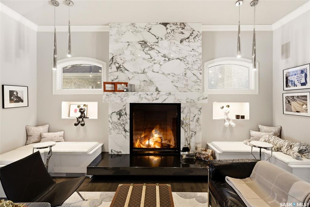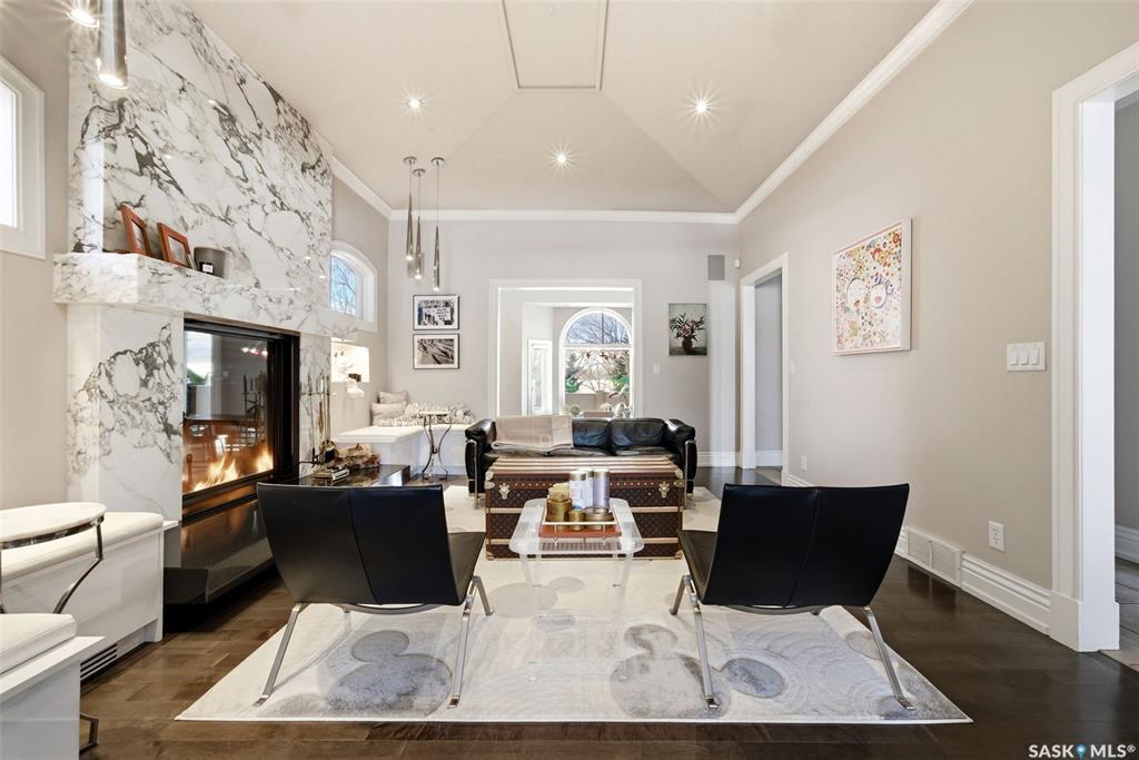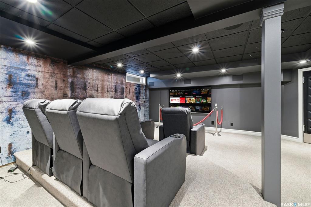 This extraordinary executive residence, masterfully crafted by Sunwest Homes, offers 3,487 sq. ft. of refined living with breathtaking unobstructed views. A striking Tyndall stone fa‡ade welcomes you into a grand foyer and elegant living room anchored by a Renaissance Rumford wood-burning fireplace adorned with exquisite Italian marble from Florence. The main level features a sophisticated private office with wet-bar rough-in, a formal dining room highlighted by a dramatic 12-foot reverse tapered ceiling overlooking the resort-style backyard, and a spectacular custom kitchen by Pilandri Bros. showcasing bold Ferrari-red cabinetry and premium appliances including Sub-Zero refrigeration, dual Wolf built-in ovens, a Fisher & Paykel gas range, dual dishwashers, and a built-in Miele espresso system. The inviting family room with gas fireplace opens through impressive Nano doors to a private outdoor sanctuary complete with a fully equipped kitchen, tiki bar, gas BBQ, hot tub, outdoor fireplace, and a sparkling salt-water in-ground pool (approx. 16ž32) has waterfall features and with potential to reinstall elegant laminar jets, heated by natural gas. Additional conveniences include main floor laundry, a practical boot room, and direct access to a heated 24ž23 garage with a dog wash station. The 2 floor has 4-bedrooms including a luxurious primary retreat with a private deck overlooking the manicured yard, park, and environmental reserve, along with a spa-inspired ensuite featuring a deep soaker tub, steam shower, and recently replaced Grohe toilet and faucets.The fully finished lower level enhances the home with a private theatre room, expansive craft studio, fifth bedroom, full bath, fitness room with ballet bar, relaxing infrared sauna, and ample storage. Completing this remarkable residence is a whole-home audio/visual system and a reliable standby generator by Cummins--an exceptional and rare offering designed for luxurious living and unforgettable entertaining.